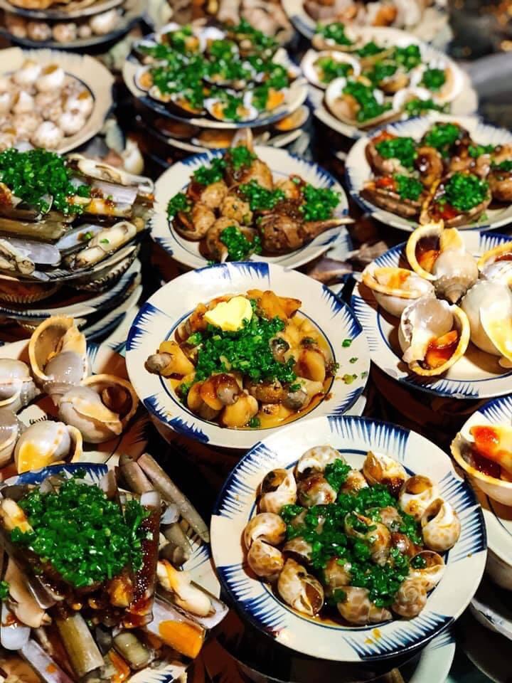 Ở đây có đầy đủ các loại từ tôm, mực, cá, ốc,… Bạn có thể mua và nhờ họ chế biến sẵn cho tiện, hoặc có thể mang về tự nấu.